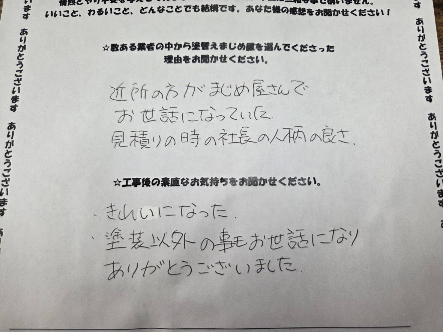 この度は、ご近所様からのご紹介がきっかけとなり、弊社に大切なお住まいの塗装をお任せいただき、誠にありがとうございました。