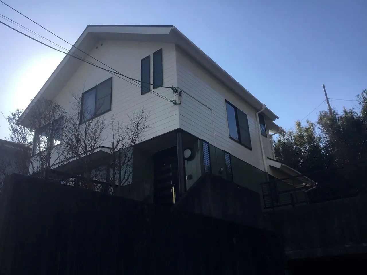 ②今まですぐ汚れてしまったとの事で、フッ素塗装での施工となりました。2色の塗りわけも大変満足できる仕上がりとなり美しいです。