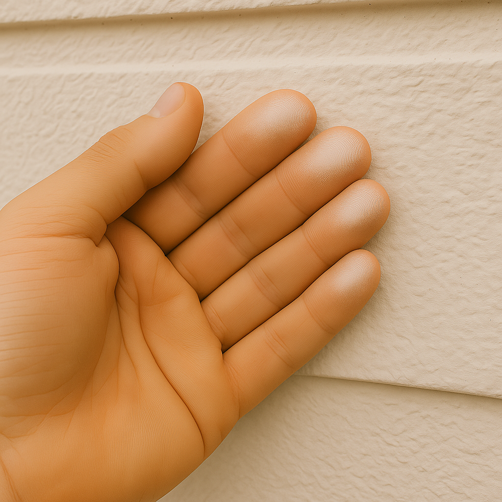 外壁を手でそっと撫でてみてください。指にチョークのような白い粉がつきませんか? これは「チョーキング現象」といい、塗料の防水効果が切れてきている証拠です。紫外線や雨風によって塗料の表面が劣化し、粉状になってしまっている状態。いわば、外壁を守る「鎧」がボロボロになり始めているサインです。