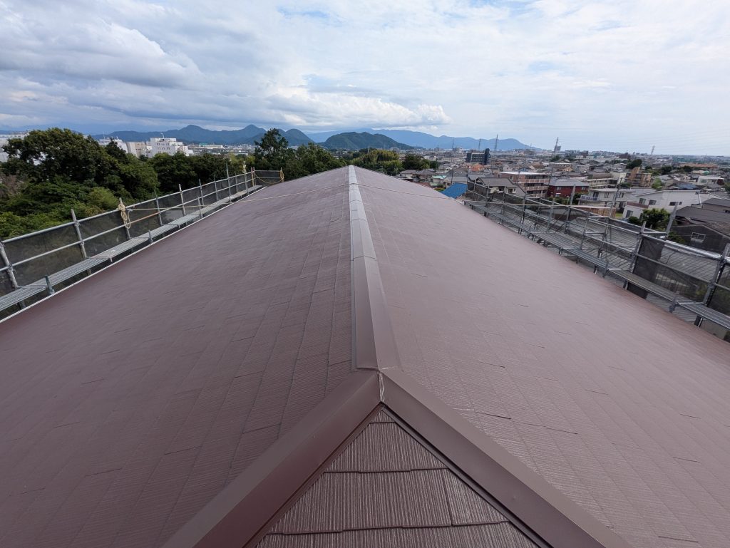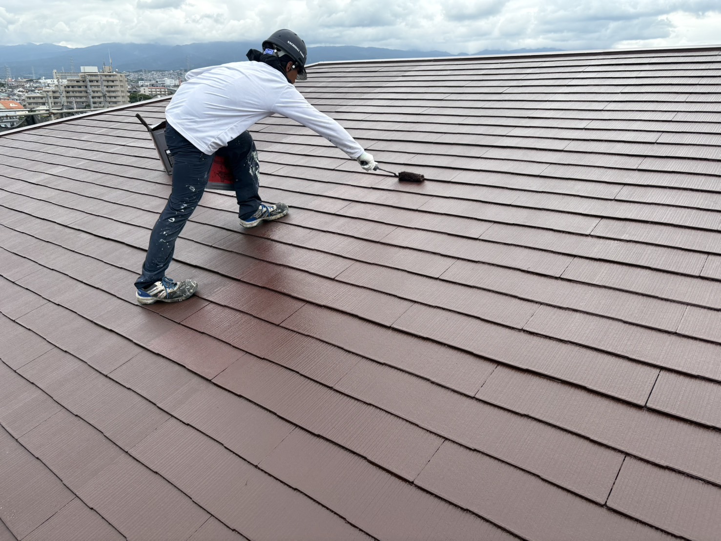 今日は、沼津市大岡の老人ホームで屋根の上塗り作業を行いました!