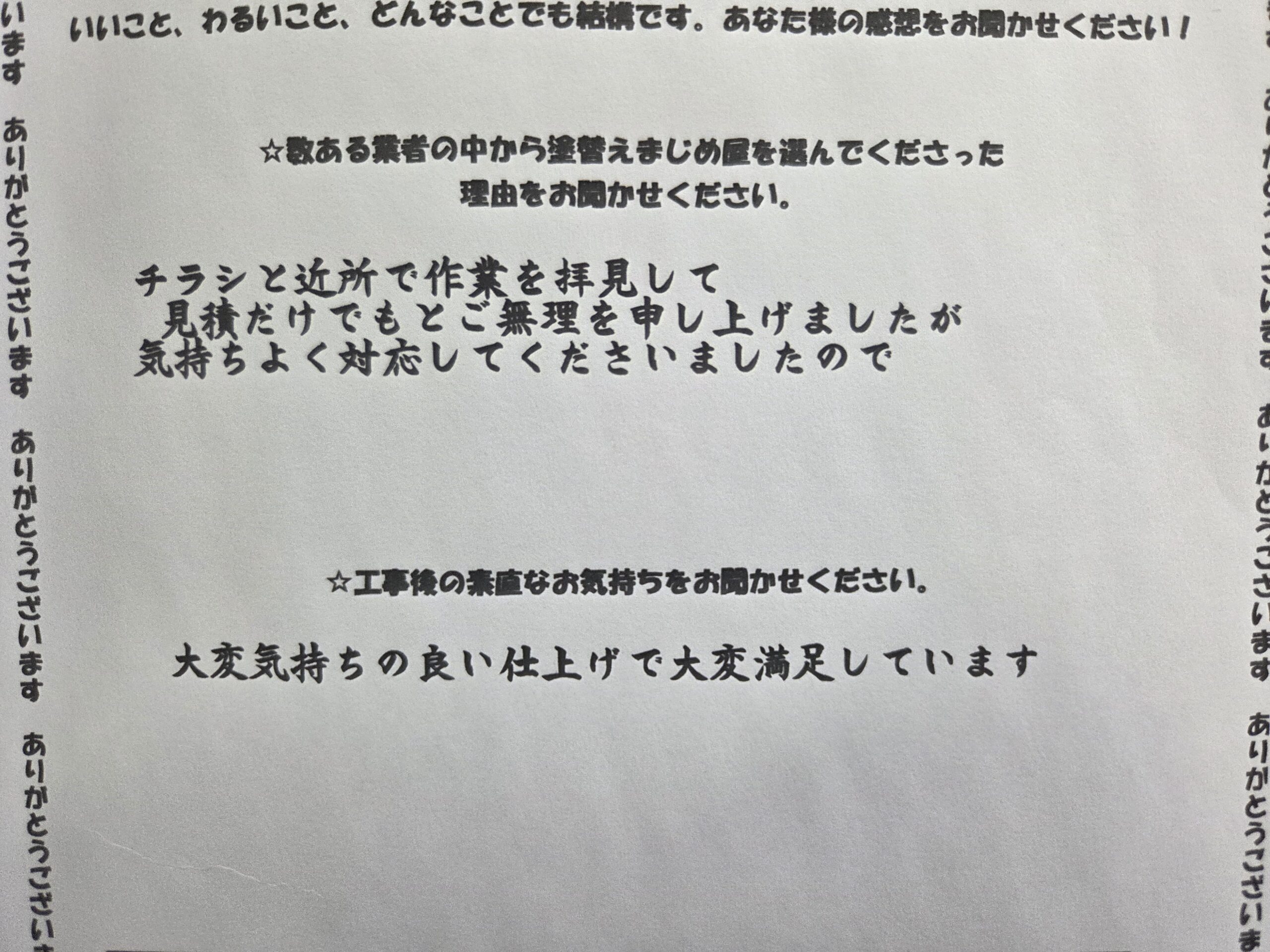 この度は、チラシやご近所での作業をご覧いただいたことをきっかけに、弊社にご用命いただき誠にありがとうございました。