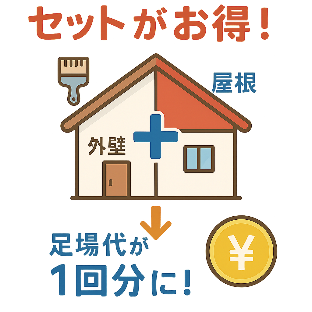 では、なぜ外壁と屋根の塗装は「セットがお得」なのでしょうか。その理由は、大きく分けて3つあります。