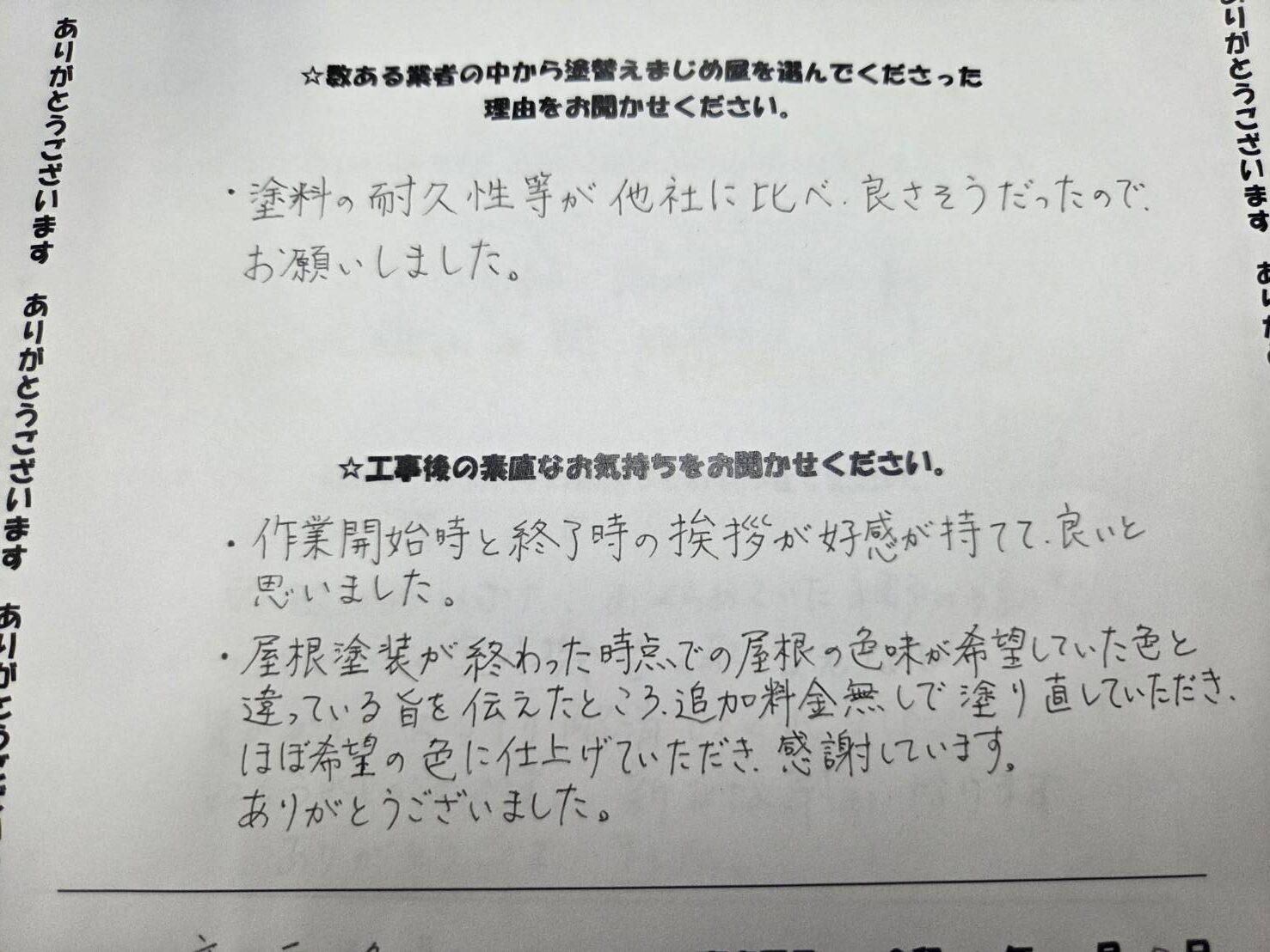 この度は、数ある塗装会社の中から、塗料の品質にご期待いただき弊社をお選びくださいましたこと、誠にありがとうございました。