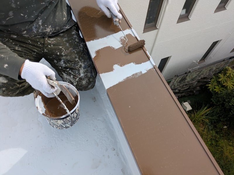本日は沼津市大岡の老人ホームで付帯部の塗装とアスファルトシングル屋根のナルファルト防水の下塗り、中塗りを行いました🥹