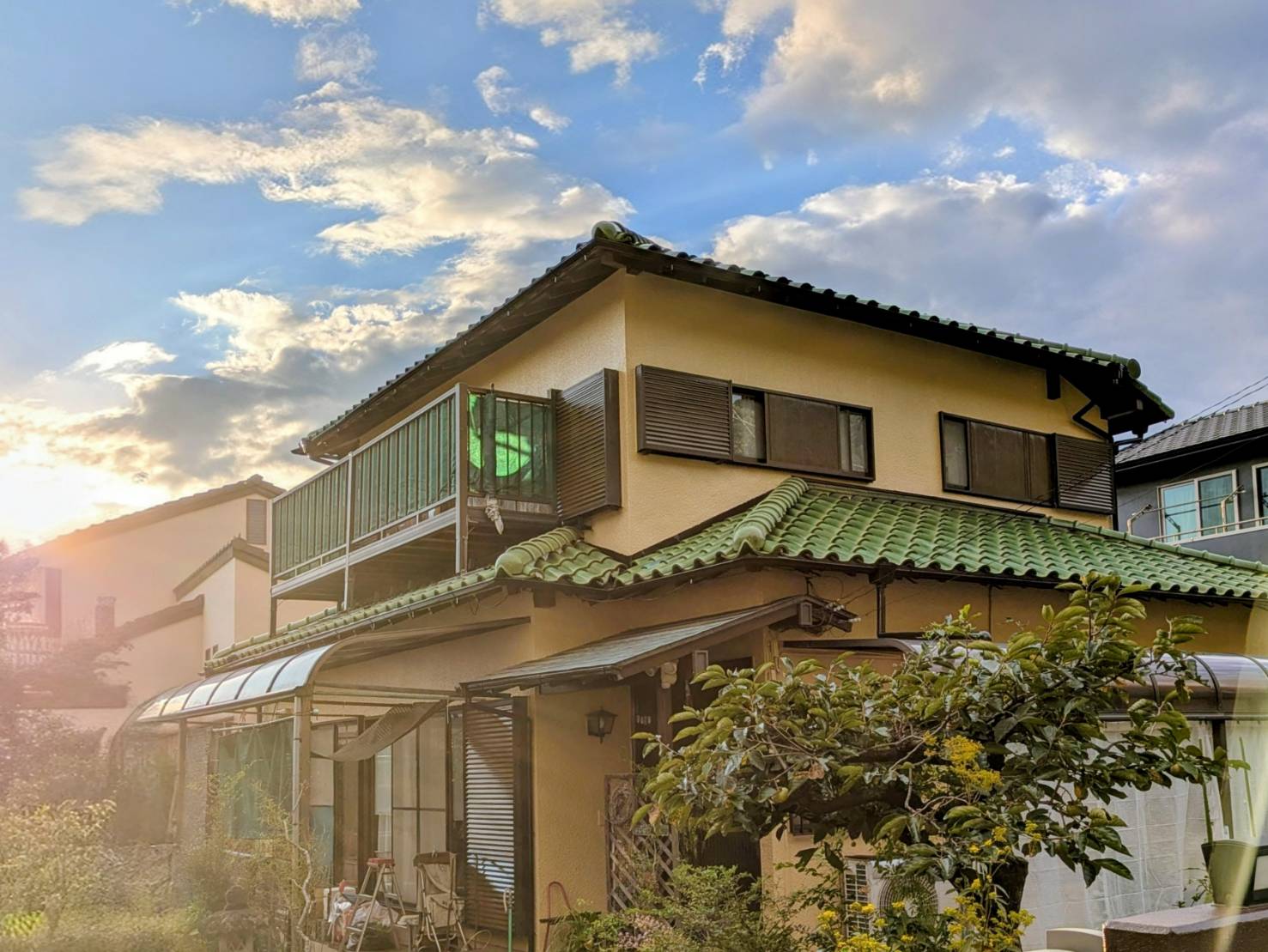 少し褪せた印象だった外壁は、温かみのあるイエローとクリヤーコートの艶で、華やかで明るい表情に。緑の瓦屋根とのコントラストも美しく、まるで新築のように生まれ変わりました。夕日に照らされた姿は、格別の美しさです。