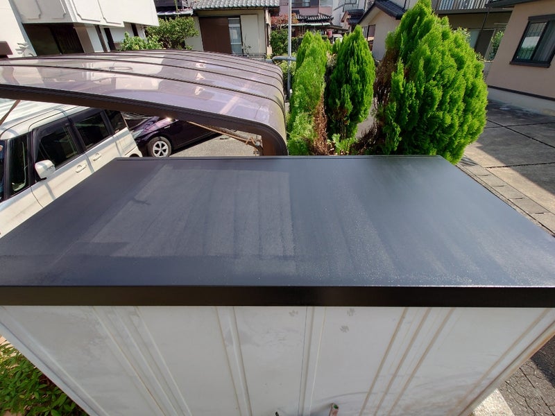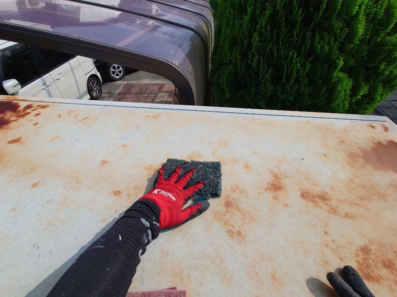 代表親方ブログ物置きの屋根の塗装に行って来ました!お疲れ様です!!福島です。本日は沼津市の東原ニュータウンと言う場所で物置きの屋根の塗装を行ってきました💦毎度のことながら今日も暑かったです😭こちらは物置きのビフォー写真です。マジックロンでケレン作業を行っているところです。次に黒色のサビ止めを全体に塗装していきます。乾燥後は、中塗り、仕上げ塗りを行っていきます。そして完了になります😊最初のサビサビの状態からピカピカの新品に産まれ変わりました!!お客様も大変満足していただきWin-Winの関係です🤗無料お見積はこちら