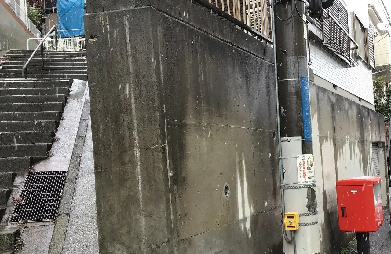①擁壁のクラックと雨の浸食がとても心配しており、工事する事になりました。