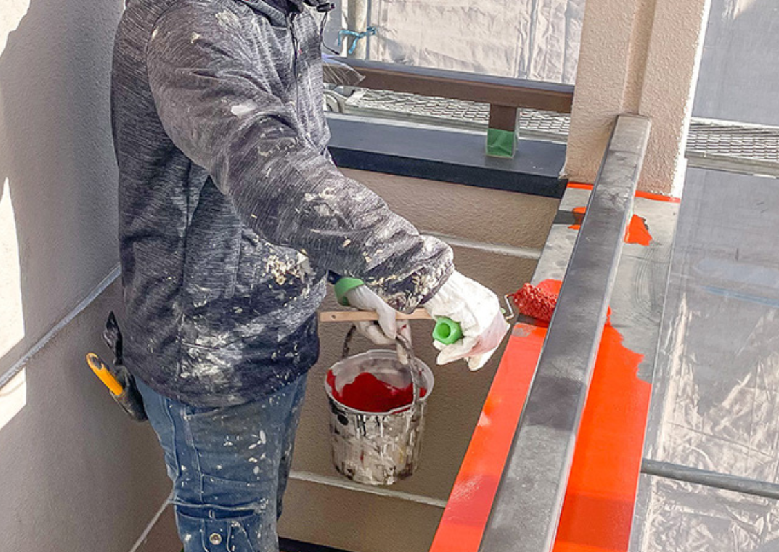 最終の仕上げ塗りを行います。共用部分の美観や耐候性を考慮し、細部まで丁寧に仕上げます。