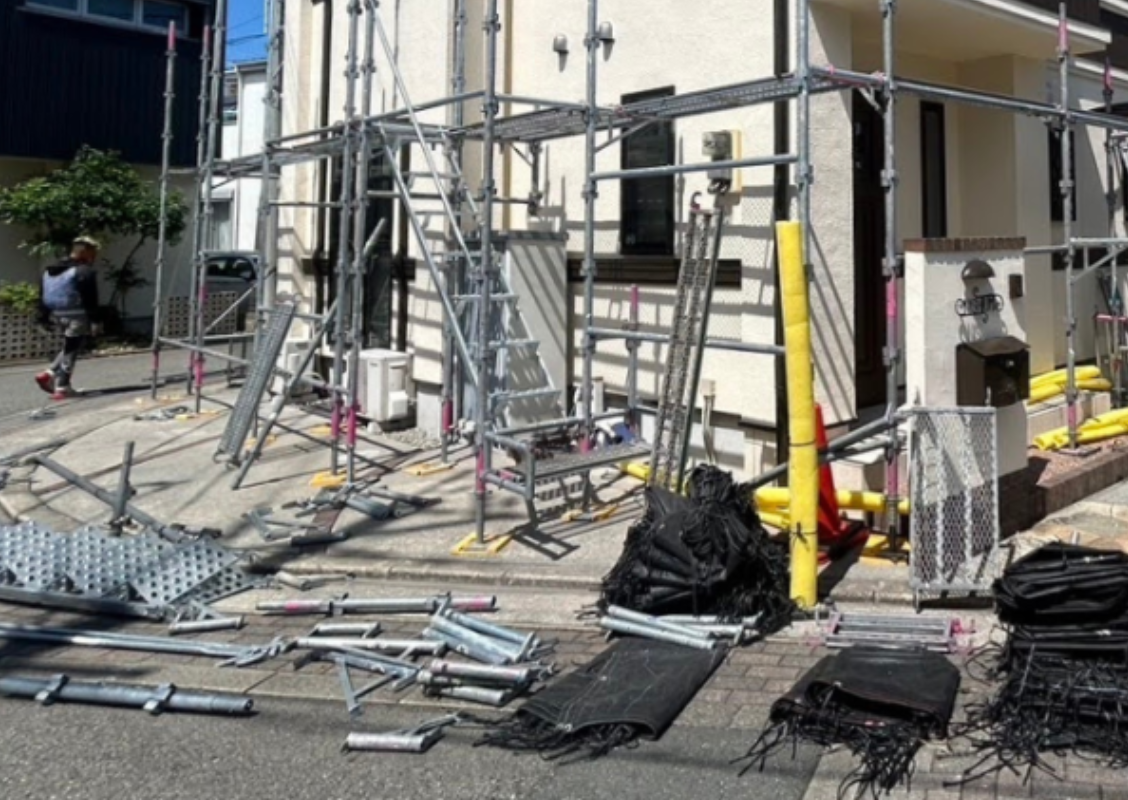 | ※一般の方が足場に登ってしまうと転落などの危険も伴いますので、施工期間中でも足場に登ったりしないでくださいね。また、子供さんたちが遊んで怪我をされたりすることにも気をつけてくださいね。 |